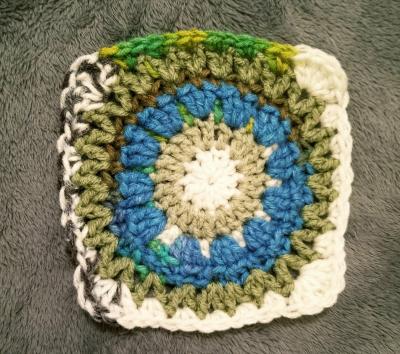 This is my square #3.  (I’m using my scrap yarn.)