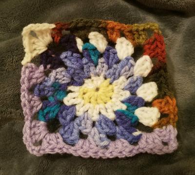 Sorry for all of the ugly granny squares but I am seriously using up scrap yarn. I tied it all together, rolled it into a ball and this is how it’s coming off. Once it’s gone I’ll be making normal granny squares.