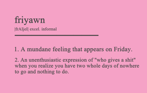 So, I retitled the post, Friyawn, and made up my own definition because you can do that.