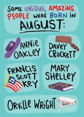 12 – Do you have any August birthdays coming up? We have ZERO birthdays in August in my family. I’m pretty sure October has the most birthdays.