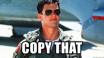 That’s the phrase that was stuck in my head this morning when I woke up. Copy that.